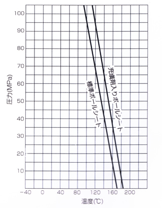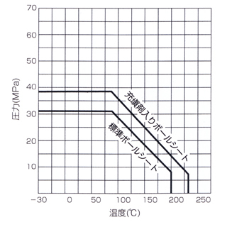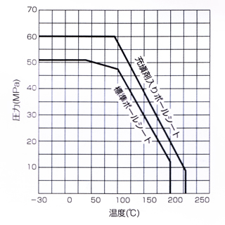 標準トリフロンボールシートは、比較的常温の条件における中、低圧領域でご使用ください。